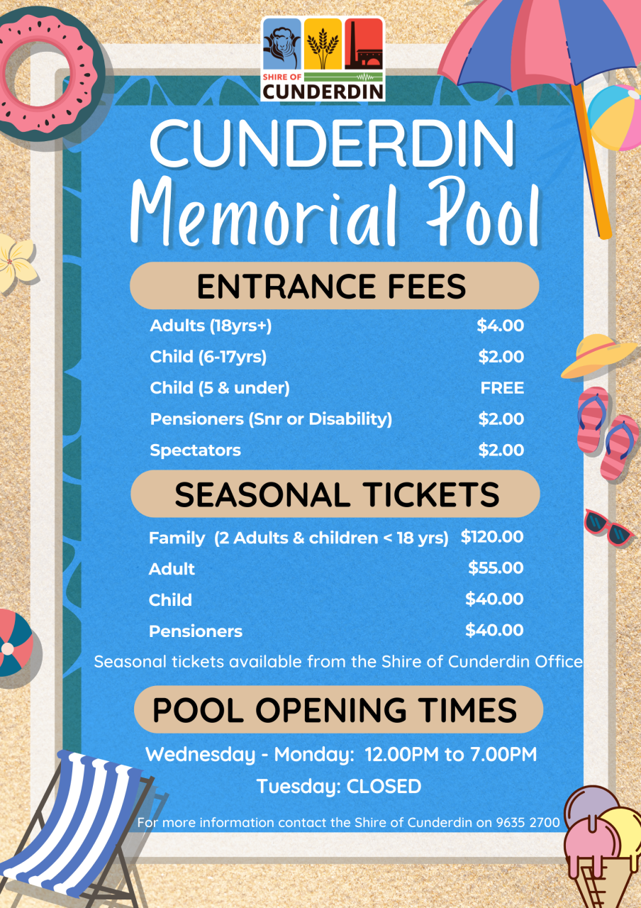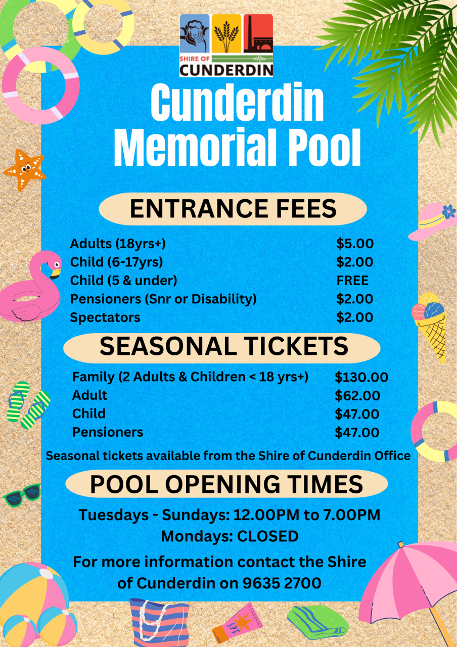 Season passes are available by contacting the Shire office on ph: 08 9635 2700.